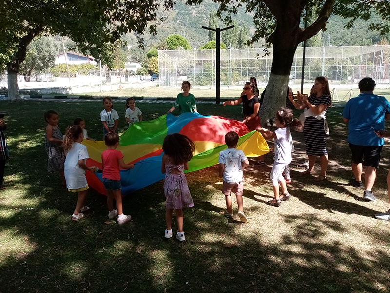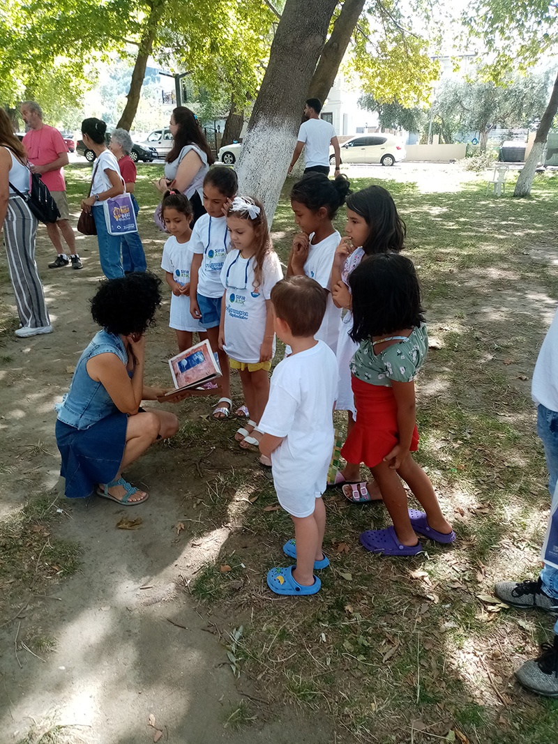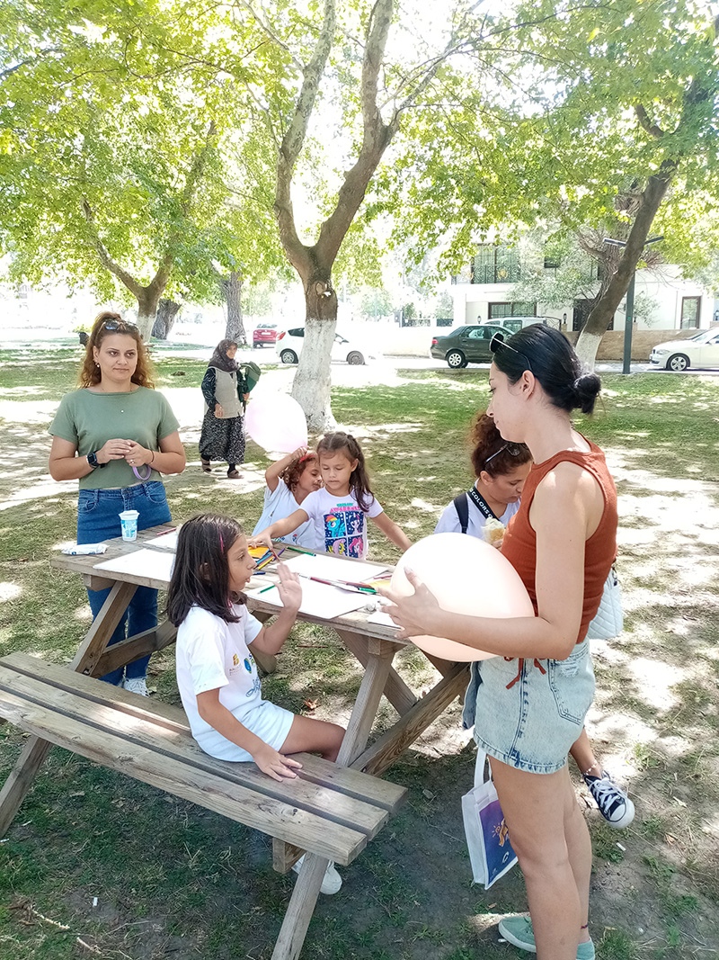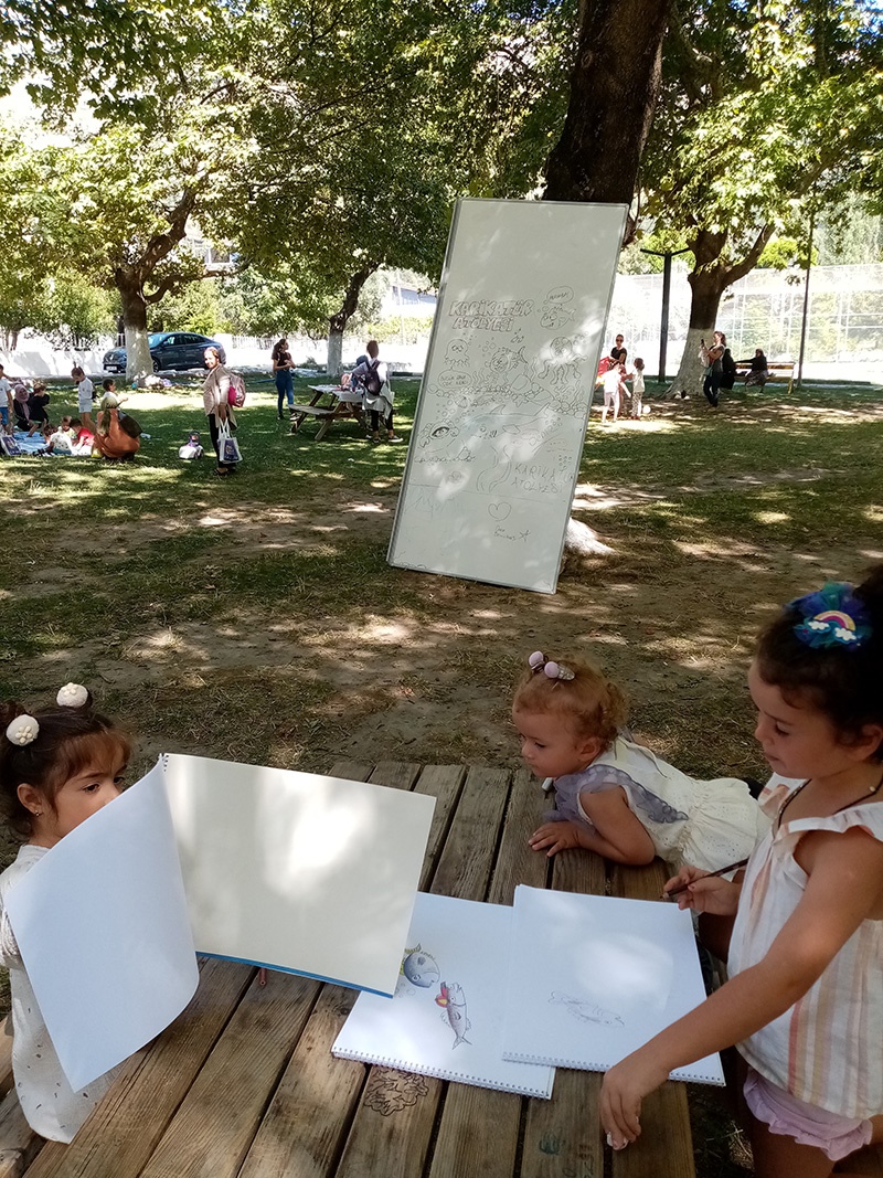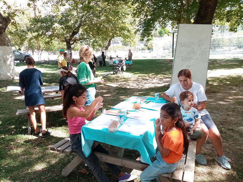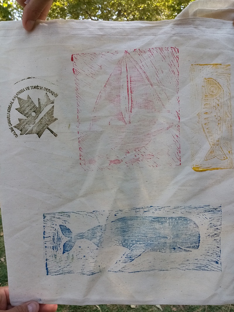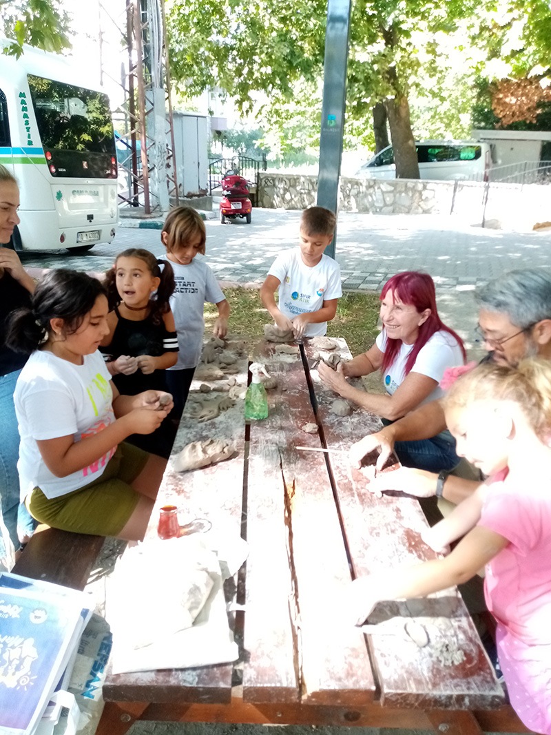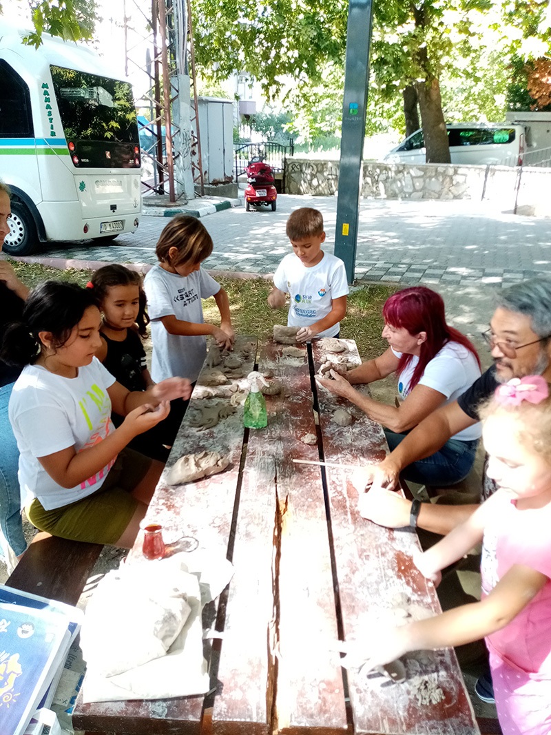 Marmara Adalar Belediyesi’nin ulaşım desteği ile Marmara Adası’nın diğer mahallelerinden de etkinliğe katılan çocuklar balıklı hikayelerle tanıştı, bez çantalara deniz canlılarını bastı ve kilden deniz canlıları yaptı.