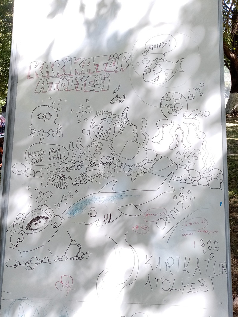 Etkinlik Adil Çamur’un Marmara Denizi’nin önemine dair çerçeve sunuşu ve Marmara Kaymakamı Murat Çiçek’in açılış konuşması ile başladı. Marmara’da çocuk olmaya dair sunuşun ardından konuşmacıların da katıldığı baskı ve oyun atölyelerinde çocuklar gün boyu devam eden kil, oyun, baskı, karikatür ve edebiyat atölyelerinde yaratıcılıklarını geliştirip doyasıya eğlendiler.