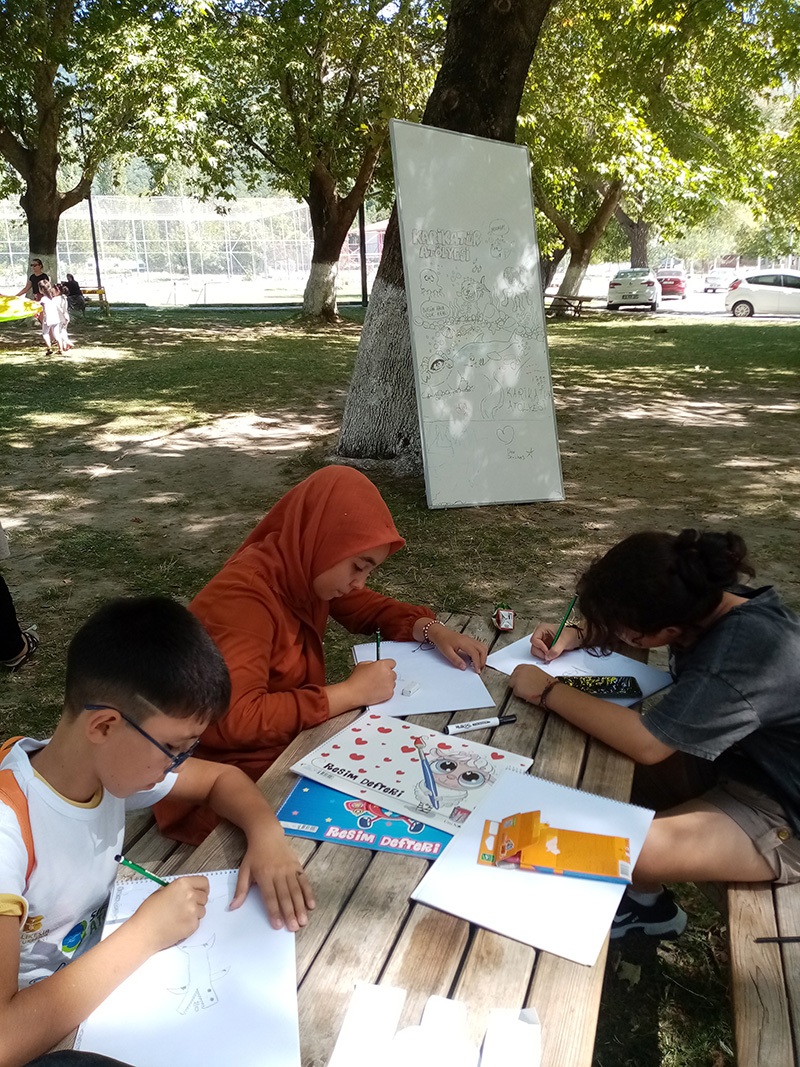 Kil atölyesinde 22. Prokonnesos Heykel Sempozyumu Sanatçıları çocuklarla kilden figürler yaptılar. Çocuk ve Gençlik Yayınları Derneği Başkanı Yazar Nilay Yılmaz çocuklarla kitap temalı oyunlar oynadı. Yazarların Marmara Adası çocukları için gönderdiği kitapları çocuklara iletti. Onur Karadurmuş’un karikatür atölyesinde denizle ilgili çizimler yapan çocuklar PÜKKAN etkinlik merkezi ile oyunlar oynadılar. Gün boyu yoğun ilgi gören Gül Bolulu’nun verdiği baskı atölyesindeyse çocuklar üzerinde denizle ilgili figürler olan linol baskıları kullanarak kendilerine kumaş çantalar tasarladılar.