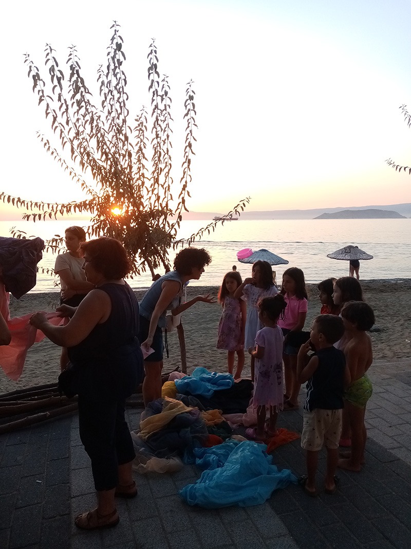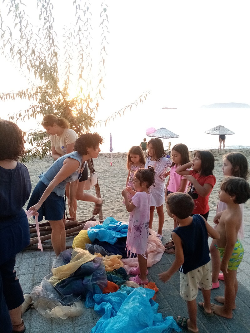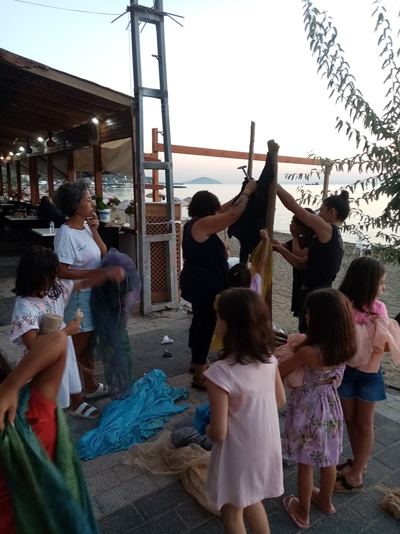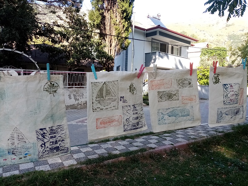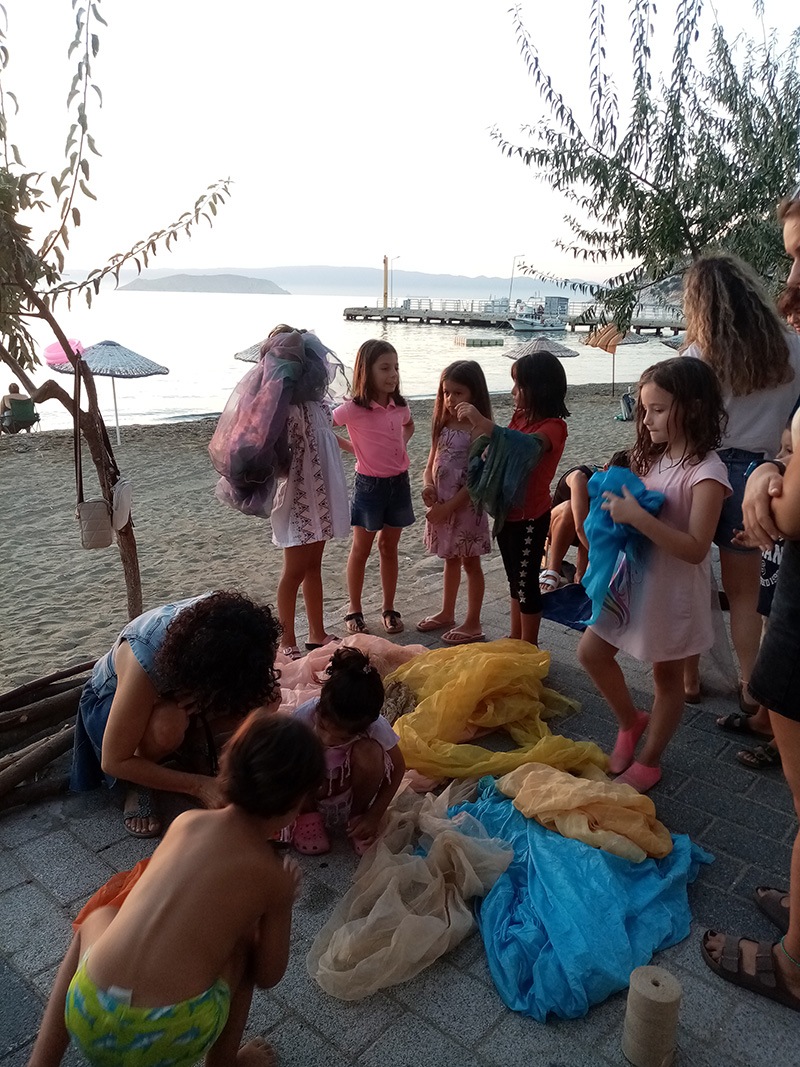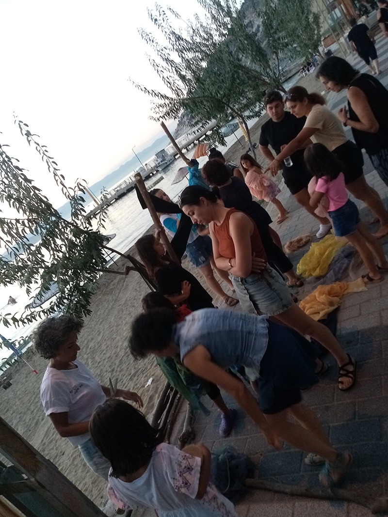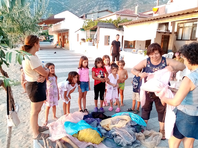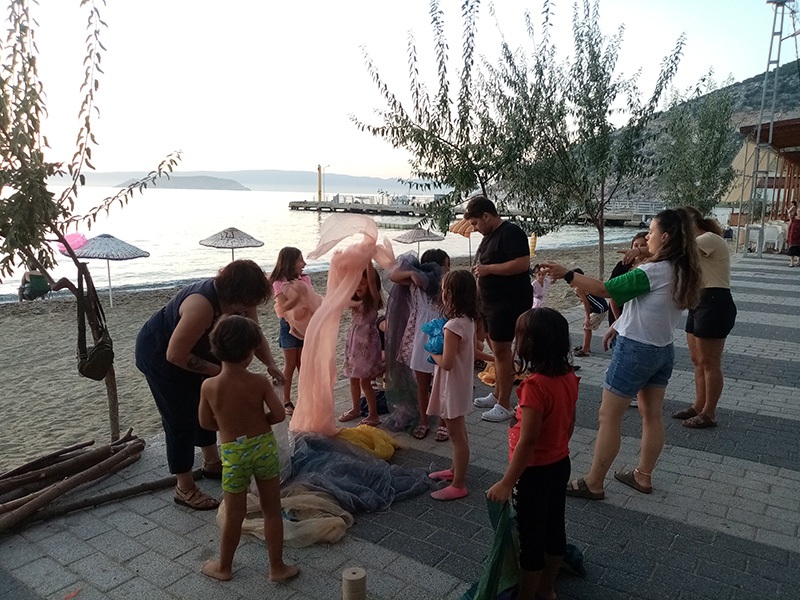 Marmara Adalar Belediyesi’nin ulaşım desteği ile Marmara Adası’nın diğer mahallelerinden de etkinliğe katılan çocuklar balıklı hikayelerle tanıştı, bez çantalara deniz canlılarını bastı ve kilden deniz canlıları yaptı.